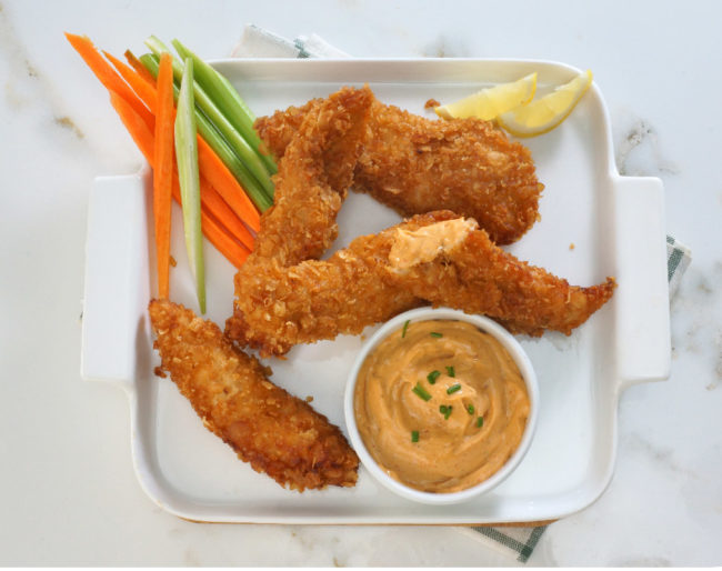 DetallesINGREDIENTES Fajitas Crujientes de El Más Pollo® 1 taza de mayonesa- 1/2 taza de crema agría 1/2 cucharadita de cebollín fresco 1/4 cucharadita de cebolla en polvo 1/2 cucharadita de ajo en polvo 1/2 cucharadita de eneldo seco 1/2 cucharadita de perejil seco 1/2 cucharadita de estragón seco 1/8 cucharadita de sal 1/8 cucharadita de…
